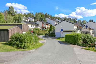 Parti fra Sagmesterveien. Fylkesvei 152 går like bak trærne til venstre i bakgrunnen.