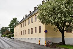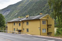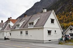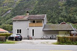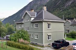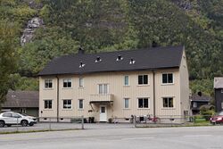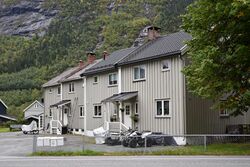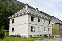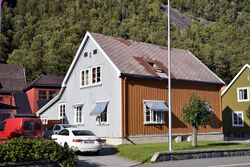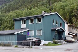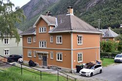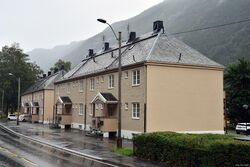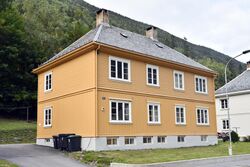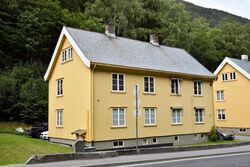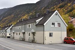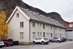 Det vestre huset i «Flekkebyen». Vertikaldelt tomannsbolig.