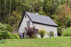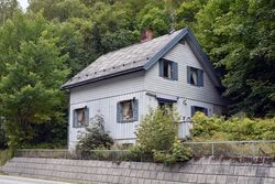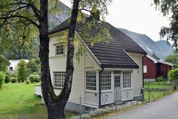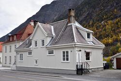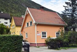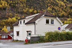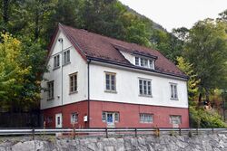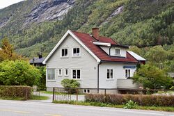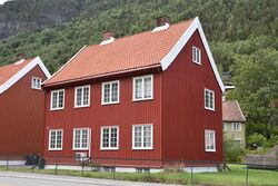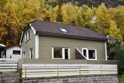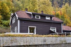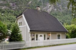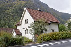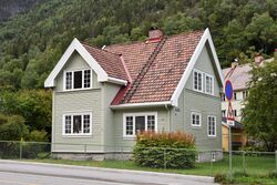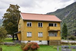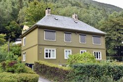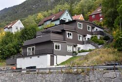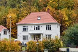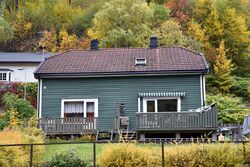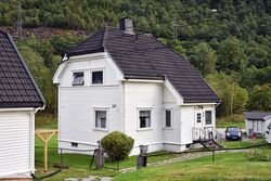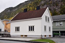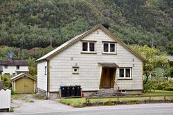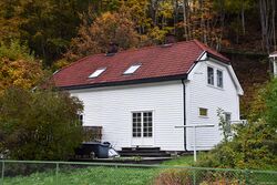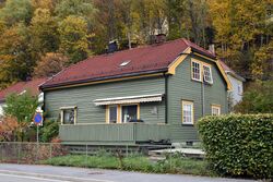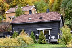 Enebolig. Det østre huset i «Flekkebyen». Opprinnelig vertikaldelt tomannsbolig.