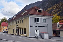 Oppført i 1910. Forretningsbygning med bolig i annen etasje. Opprinnelig slakterforretning. Fra 1996 Torben W. Rasmussen AS flisleggingsfirma.