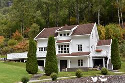 Enebolig. Opprinnelig vertikaldelt tomannsbolig.