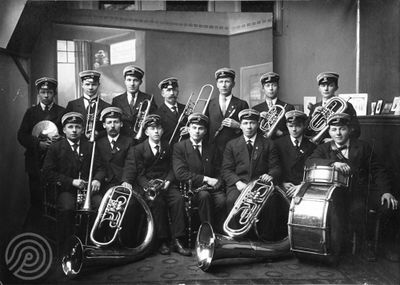 Fagbevegelsen hadde et særdeles dårlig forhold til datidas militærvesen, da soldater ofte ble satt inn mot streikende arbeidere i mange konflikter mellom arbeidsgivere og arbeidstakere. I Harstad ble forholdet såpass betent at det ble protokollført at man ikke kunne benytte instruktører fra 6. brigades musikkorps, også kjent som Brigademusikken (seinere Divisjonsmusikken). De startet opp sin virksomhet i byen i 1911. Hvem som faktisk var instruktører er pr. 28. oktober 2018 ikke kjent, men et bilde av korpset fra 1916 kan gi noen svar. Midt i første rekke på bildet, en posisjon dirigenter ofte har på offisielle bilder, sitter Hjalmar Rubach. Han var utdannet ved Tromsø Stifts Underofficersskoles Musikkskole som ble etablert i Harstad i 1900. Fra 1911 var han ansatt som musiker ved musikkorpset, men i 1914 valgte han å si opp jobben i korpset, da jobben som musiker ikke lot seg kombinere med hans religiøse overbevisning. (Han kom for øvrig tilbake til 6. divisjons musikkorps i 1922 etter å ha fått innvilget fri på lørdager). Rubach var knyttet til Syvendedags Adventistkirken. For dem er lørdag hviledag, det var det ikke for Brigademusikken. Det er dermed mulig at Hjalmar Rubach ble engasjert som dirigent så lenge han ikke var ansatt i Brigademusikken.