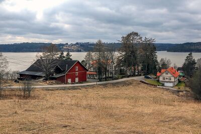Parti fra Sandsveien med Øyeren i bakgrunnen.