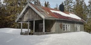 Sandvollen seter på Øståsen omkring 1927. Anne Marie Røed med døtrene Gjertrud, Ingrid og Else.