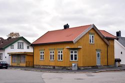 | 14 | Gnr. 170/68 En av sju nærmest identiske kommunale leiegårder oppført 1917–20 etter tegninger av stadskonduktør Peter Smidt. Dette markerte starten på sosial boligbygging, et tiltak for å avhjelpe elendige boligforhold i byen. Hvert hus hadde fire leiligheter på 2 rom og kjøkken med innlagt elektrisitet og gass og WC i kjelleren. Husene ble oppført i Nybyen i Rosenvolds gate, Tidemanns gate og Schanches gate på jordene til den tidligere husmannsplassen Øvre Myra som ble innlemmet i byen 1. januar 1889. | |