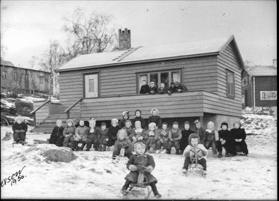 Julefest for ungene i barnas hus i barnehagen 23. desember 1950: «Lekestuen var festlig pyntet med julestas, og et pent juletre var også kommet på plass. De nye, kjekke, pene stolene gjorde også sitt til at det ble riktig koselig. Barna hygget og moret seg med å gå rundt juletreet og leke. Alle ungene fikk hver sin morsomme papirhatt, og de fikk kaker og sjokolade. Og det ble både gråt og jubel da julenisseparet kom til festen og delte ut pakker. I anledning at dette var den første fest i barnehagehuset, var det ordnet med fotograf som kom og foreviget festligheten. Denne julefesten avsluttet barnehagen for dette år, og ungene vandret strålende og fornøyde hjem».