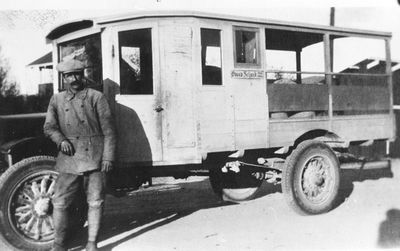 Den fyrste bilen som gjekk mellom Årnes brygge og Ulveneset, var ein Federal kjøpt inn ved starten i 1919. Mannen på fotografiet er Tor Sannes.