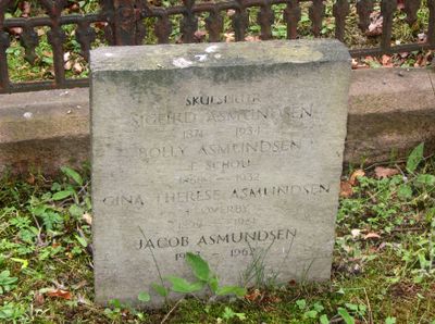 Asmundsen er gravlagt ved Vår Frelsers gravlund i Oslo sammen med sin kone Bolly, sønnen Jacob, og svigerdatteren Gina.