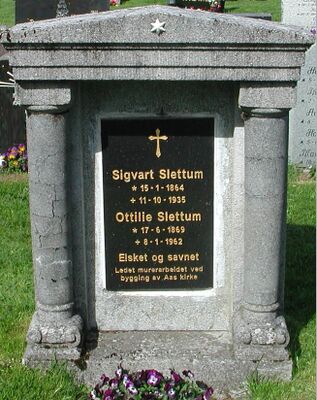 - Sigvart Slettum i Klokkerbok for Vestre Toten prestegjeld, Ås sokn 1928-1941 fra Digitalarkivet. (Begravede 1935)