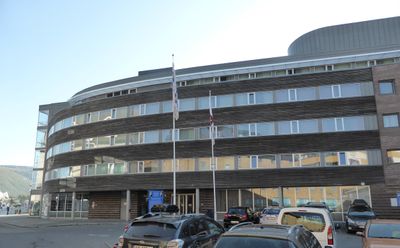 Clarion hotel Bryggen, som har adresse Sjøgata 19/21, ble bygd i år 2000. - Nr. 23a og b er ikke i bruk.