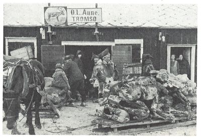 O.L. Aune drev en omfattende handel. Her fra Bossekop marked i Alta.