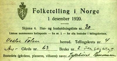 - ↑ Hus- og hushaldliste Sjukehuset i folketelling 1920 for Vestre Toten kommune fra Digitalarkivet
