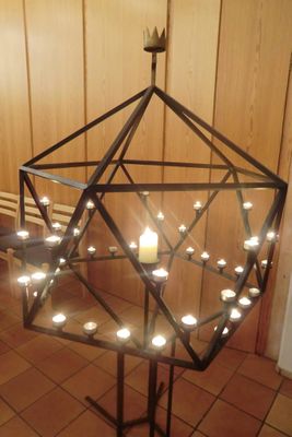 Lysgloben er formet som et regulært ikosaeder (et romlegeme med 20 like sider, som alle er likesidede trekanter). De regulære romlegemene symboliserte det organiserte kosmos for middelalderens mystikere. Taket på kirken er formet som en 4-sidet pyramide, eller et halvt oktaeder, som er et av de andre regulære legemene. Rundt et stort lys i midten av globen er det plassert 40 mindre lys. Tallet 40 representerer lengsel, smerte og lidelse i bibelhistorien. Lysene symboliserer håp.