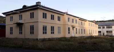 Den store administrasjonsbygningen hadde verksteder i første etasjer og kontorer i andre. Den er oppført i pusset betong i to etasjer. Den er noe endret innvendig med hensyn til planløsning og materalbruk, men er godt bevart utvendig og har blant annet de originale vinduene.