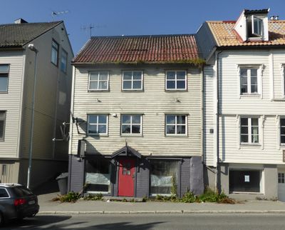Skippergata 10 i Tromsø er en tradisjonell forretningsgård; butikk i 1. etg. og leiligheter i 2. og 3. etg. - Gammelt matr.nr. 140.