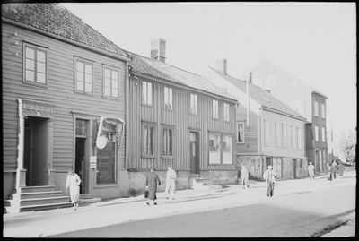 Sjåfør Thorleif Antonsen, Bernhard Corneliussen, med fiskemat og melkeforretning i Fredrik Langes gate 25, kontormann Finn og agent Oscar Stavseth, (1946).