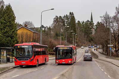 Skiveien er en viktig kollektivtrasé, og følgende busslinjer er innom den: