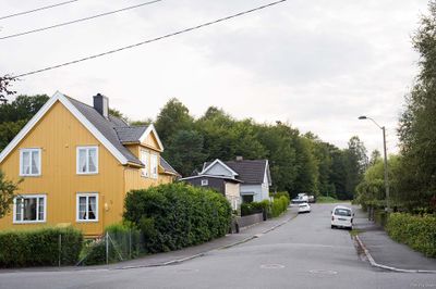Skogveien sett vestover fra Heibergs gate.