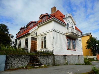 Skolegata 14 i Tromsø er et vakkert hus, men trenger et strøk maling. - Tidligere adresser Øvre skolegate 2e, Øvre skolegate 14a.