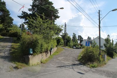Langs veien finner man villaer og småhus.