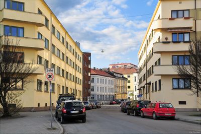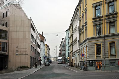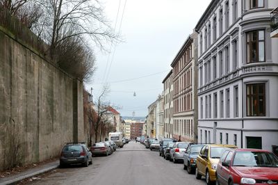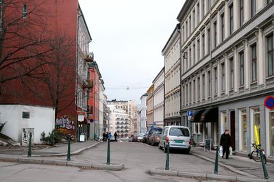 Motiv fra nedre del av Sofies gate i Oslo, foto tatt retning Bislett.