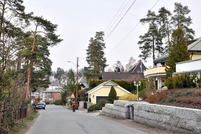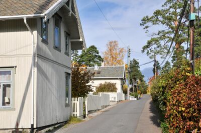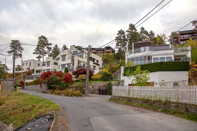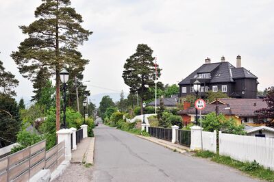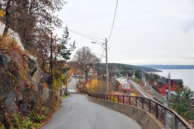 Det ligger en rekke eldre villaer langs veien, med flott utsikt over fjorden.