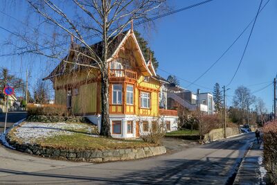 | 36 | 1915 | Bolig | Villa Vidsyn, oppført for fullmektig Christian B. Gierløff, ark. O.N. Ruud. Planlagt revet, men ble i 1970-åra overtatt av Nils Messel og restaurert. | |