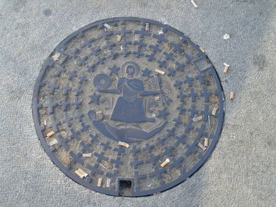 - Relieff av Oslos byvåpen med St. Hallvard ved hovedinnkjørselen til Ullevål sykehus.Foto: Stig Rune Pedersen