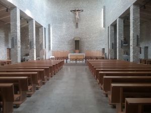 På vestsiden av selve kirken ligger et menighetssenter med plass også for katekese (opplæring) og kontorer.