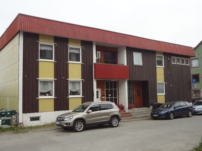 | 59 | Det opprinnelige huset ble bygd i 1920 av Ivar Martin Wold og musikkløytnant Lund. (far til arkitekt Gunnar Lund). Lund bodde i 1. etg og Wold i 2. Da sønnen Idar Wold stiftet familie i 1940, overtok han Lunds leilighet. Huset på bildet ble bygd i 1962 etter at den gamle gården fra 1920 (se bilde i høyre spalte) brant ned i 1960. Da huset brant, bodde Kyrre Wold i 1. etg og hans mor Kristine i 2. etg. I det nye huset (tegnet av arkitekt Carsten Stengaard i Narvik) bodde Kristine Wold i 2. etg. til sin død i 1964 og sønnen Kyrre i 1. etg. Ikke lenge etter Kristines død ble huset solgt ut av familien. | |