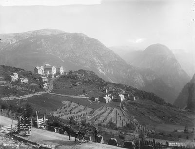 - Sivlesteinen ved hotellet med innskripsjonen «Og det er det stora og det er det glupa at merket det stend um mannen han stupa».Foto: Nasjonalbiblioteket (1960).