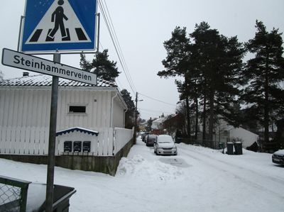 Veien har navn etter husmannsplassen Steinhammer under Nordseter gård, som lå på østsiden av Ekebergveien. Navnevedtak ble gjort i 1928.