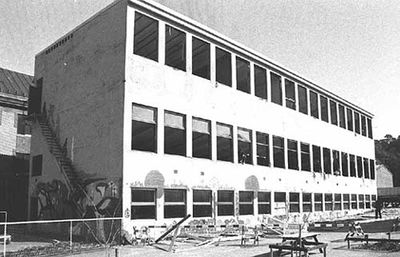 Fram til det nye gymnasbygget sto ferdig i januar 1935, foregikk undervisningen i bystyresalen i de gamle kommunelokalene på Sneppen. Skolen manglet spesialrom og måtte derfor leie på folke-/realskolen. Grønlandsfareren og tidligere husmannen fra plassen Grinda under Trana gård i Steinkjer, Kristian Kristiansen var nabo til kommunelokalene og lånte ut stuen sin til lærerrom.