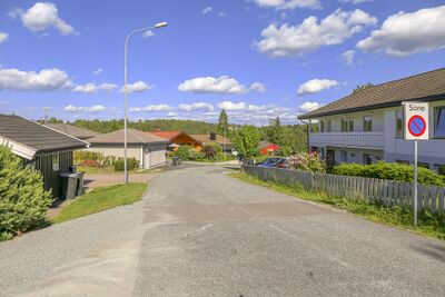 Veien ble anlagt og navnsatt omkring 1980, og er oppkalt etter gården Stenfelt. Både innmark og utmark ble utparsellert og bygd ut med småhus og rekkehus i første halvdel av 1980-årene.
