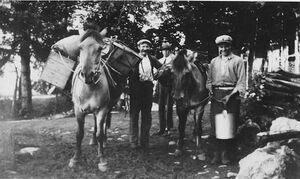 "Etter at det vart veg [i 1937] kom splinten med hest og kjerre. Dei fekk då ei ny verksemd - dei bytte hestar. Det var livate tider når splinten heldt hus i nausta. Mange hadde og Vika som ein badestad. Fine søndagar var badeaktiviteten stor."
