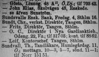 - Agnes Helena Lindman (1869-1948), oppvokst i Kristiania. Kona til sportsjournalisten Edvard Alexander Lindman (1862-1939). Bodde på Östermalm.
