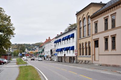 | 134 A-J | Gnr. 3020/322. Oppført 1902 av Albert Cristophersen som drev manufaktur- og kolonialforretning her til utpå 1970-tallet. O. E. Leines åpnet bakeriforretning i et fløylokale i 1903. I en bakbygning holdt en kassefabrikk til, og i en sidebygning var det bakeri. I seinere år har bl.a. Grans storsenter, All-sport og Torstrand videoutleie hatt tilhold i bygningen. I dag holder Maja's bakeri & konditori til her. Endret adresse 4. desember 2017 fra Dronningens gate 34 A-J. | |