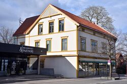 | 222 | Gnr. 200/2619, «Apotekergården». Br. matr. nr. 237. Huset ble bygget i 1816 av apoteker Mulertz som byens første apotek. Han hadde drevet et apotek i nabogården siden 1807. I en periode var det også spritbrenneri her. | |