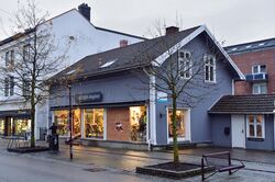 | 134 | Gnr. 200/2528. Opprinnelig lagerbygg for forretningen til Christian S. Hansen, «Jernhansen». Tidlig på 1930-tallet ble huset bygd om til butikklokale for gullsmed Ystad, som holdt til her i mange år. Ombyggingen til Art deco-stil ble tegnet av arkitekt Hans Ødegård. Tomi's slakterforretning holder til her i dag (2021). | |