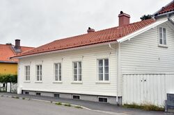 | 215 | Gnr. 200/2613, «Radehuset». Br. matr. nr. 253 A Sykehus, kalt Radehuset, ble bygget spesielt for radesyke og åpnet 27. april 1776. I 1830 ble sykehuset nedlagt og solgt til høker Herman Meyer. I dag (2020) holder Radehuset barnehage til i huset. Porsgrunn kommune kjøpte eiendommen i 1999, med det formål å drive barnehage. Denne åpnet i 2001. Huset er delvis ombygget og påbygget. Fasader og hage er beholdt i gammel stil. | |