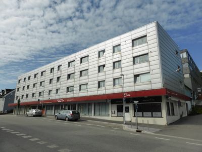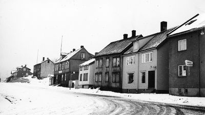 Storgata 140 i Tromsø var det siste huset i rekken 132-40 som måtte gi tapt for Rørhandelen på begynnelsen av 1960-tallet. - Gammelt matr.nr. 70.