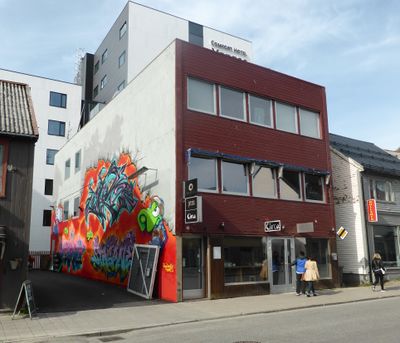 Storgata 36 i Tromsø var et pent bolighus med forretning i 1. etasje. I dag er det en nokså intetsigende forretningsgård. - Gammelt matr.nr. 518.