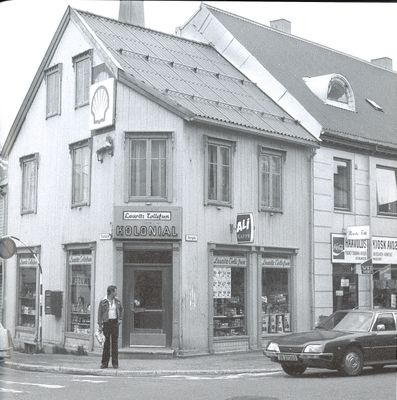 Lauritz Tøllefsen startet kolonial, frukt, glass og stentøyforretning her i 1924 og Nanna Tøllefsen sto som eier i 1932 og 46.