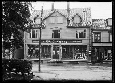 I 1908 kjøpt av handelsborger Thorstein Lunde, med herreekvipering og skotøy. Han kom fra Fredrik Langes gate 20 der han hadde startet i 1898. Forretningen ble tidlig en av de største i sin bransje i byen. Lunde, kjent som en rettlinjet og aktet mann, døde i 1935. Butikken ble da overtatt av forretningens førstemann, Per Nøst, som Th. Lundes Eftf., herre- og guttekonfeksjon, 1940/77, (Tor Nøst i 1982/93).