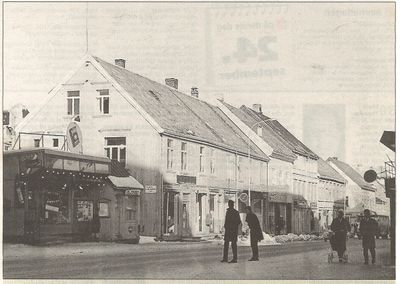 Jan Salvesens kiosk sto her før den ble flyttet til Storgata 142 midt på 60-tallet. (1957).