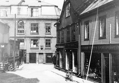 Fra 1923 drev fru Bakland kafé mot Sjøgata. - T. Baklands kafé (Central), (1932).