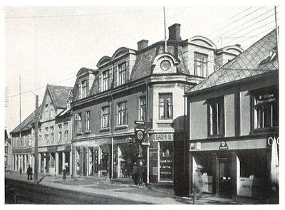 Peder Jacobsen drev forretning mot Sjøgata på 1940 tallet. A. Anderson Schmidt, (Agnes A. Schmidt), manufaktur og trikotasje, (1940/46), tannlege Anna Eriksen-Ystehede, (1940/46), skredderne Sigurd og Sverre Sønvissen, (1940), sydame Mary og fyrbøter Petter Nicolaisen, kjøpmann Olaf Hagen-Olsen, agent Peder Jakobsen (skipsmegling, sild og fisk), lærerinne Arna Warmedal, postfullmektig Einar Eriksen, (1940).