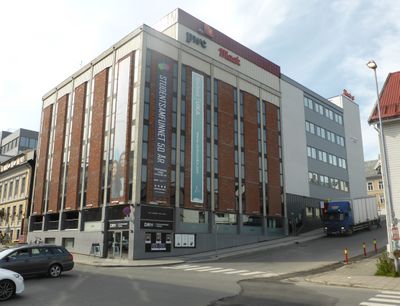Storgata 8 lå på hjørnet her, ved siden av nr. 6. Begge ble revet for å gi plass til Mack bryggeris nye produksjonslokaler på 1970-tallet. Da Mack flyttet ut i 2012 flyttet studentsamfunnet Driv inn.