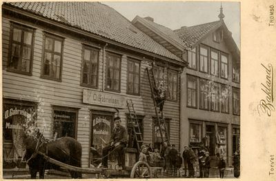Ole Gabrielsens forretning ble etablert i 1884, med kolonial, etter hvert tekstiler. Han kom fra Bardu, var engasjert i byens politiske liv, forstander i Frimenigheten og aktiv i avholdssaken. Sønnen Ragnvald hadde startet egen forretning i 1908. Ole Gabrielsen døde i1918 og sønnen Andreas Gabrielsen arvet denne eiendommen og Storgata 91b, men da han døde i 1922 ble «O. Gabrielsen» avviklet. Kjøpmann Ole og Martine Gabrielsen bodde her med seks barn og diverse butikkansatte i 1900, 1910 og 1916.