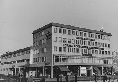 Tromsø Samvirkelags forretningsgård ble innviet 20. juni 1955, kolonial, manufaktur, sko, radio, (bestyrer Johan Leithe), (1957/66).